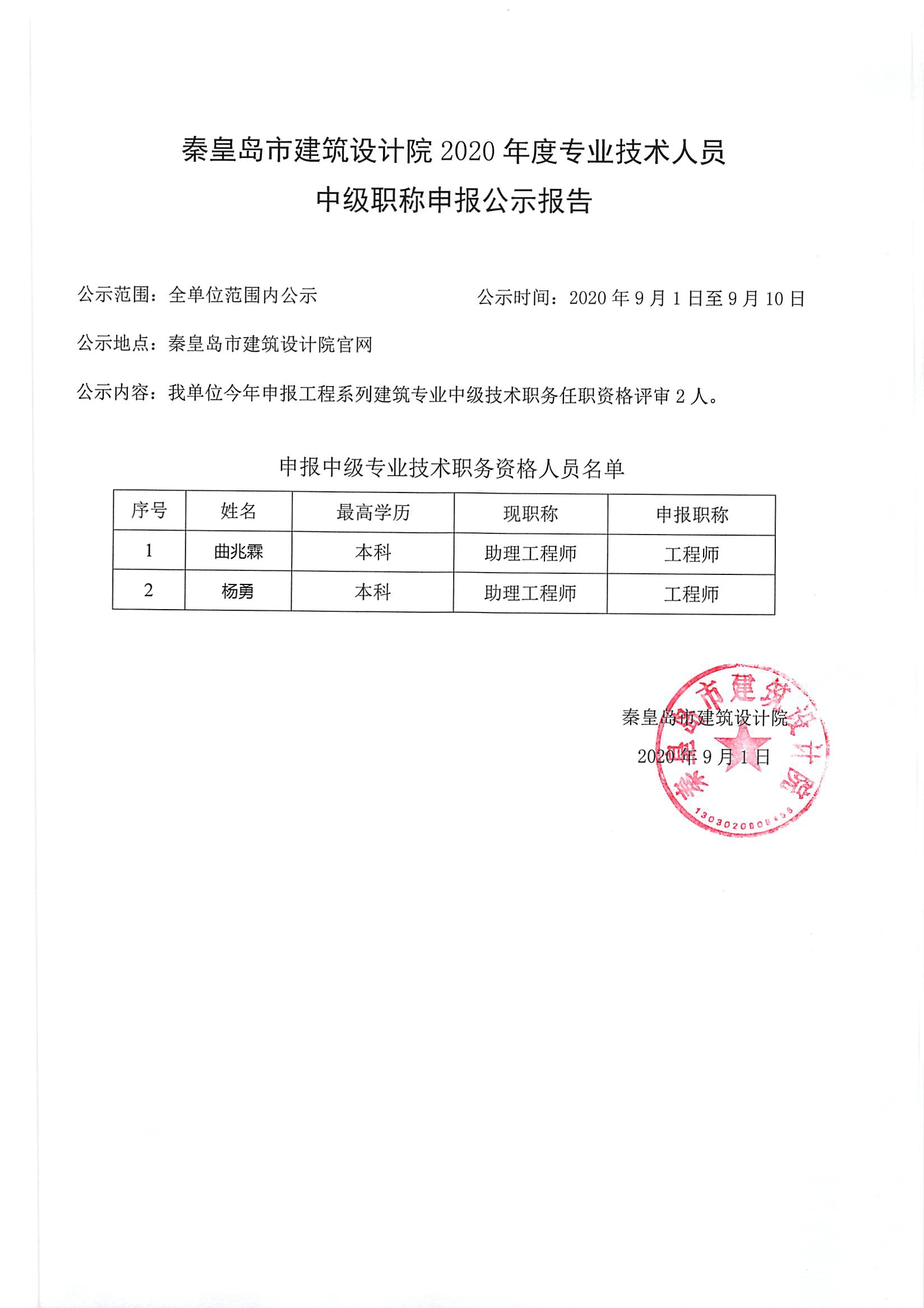 2020職稱公示